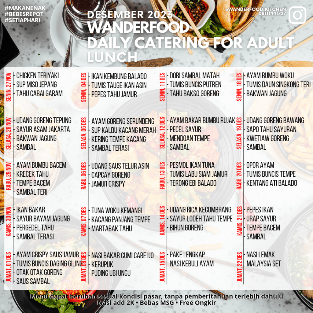 Menu untuk tanggal 27 November – 22 Desember 2023