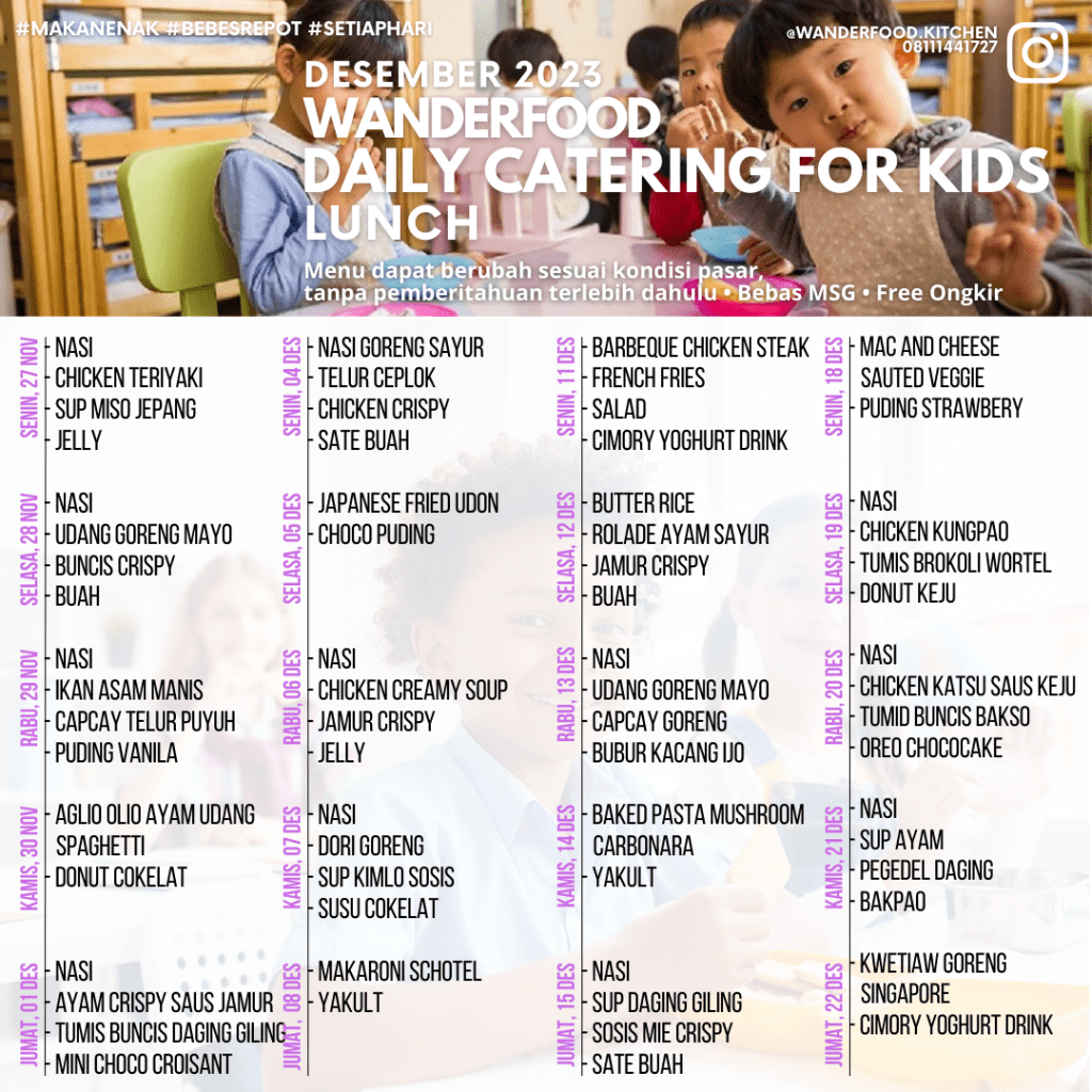 Menu untuk tanggal 27 November – 22 Desember 2023